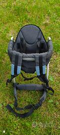 Ha una imbragatura di sicurezza da allacciare intorno alla vita. Corredato di cinture di sicurezza x il bambino.