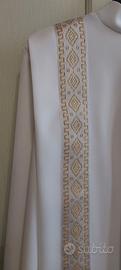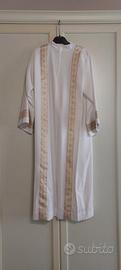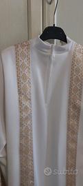 Tunica prima comunione con croce. Lunghezza tunica: 107cm Lunghezza manica: 46cm Larghezza spalle: 37cm Sono presenti delle spalline all'interno che possono essere scucite. Compreso anche un cordone bianco. L'abito è praticamente nuovo se non per una micro macchiolina nell'orlo. Disponibile per consegna a mano o per la spedizione tramite TuttoSubito.