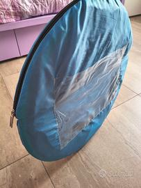 Tunnel per bambini, da giardino, ma anche da interno. Facilmente richiudibile e con una pratica valigetta per riporlo. Chiuso, occupa pochissimo spazio.