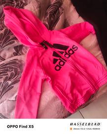 Vendo bellissima tuta Adidas originale da bambina, composta da felpa con cappuccio e pantaloni coordinati.