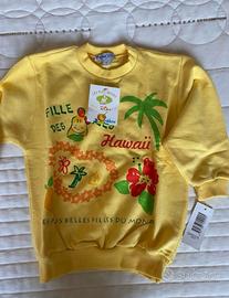 Colore giallo con stampa allegra a tema tropicale: “Les plus belles des îles - Hawaii”.