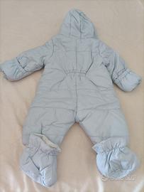 Bellissima tuta imbottita Brums azzurra tg. 3 mesi/62 cm con cappuccio. Babucce staccabili. Tessuto esterno impermeabile, interno in cotone, imbottituta in poliestere. Usata pochissimo, come nuova