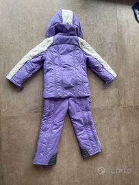 Vendo tuta da neve per bambina taglia 116 cm, adatta a 6 anni, colore lavanda come da foto. È composta da giacca imbottita con cappuccio e pantaloni coordinati, calda e comoda, perfetta per la montagna, la settimana bianca o per giocare sulla neve. La giacca ha chiusura con zip e tasche frontali mentre i pantaloni sono imbottiti e dotati di zip sul fondo per facilitare l’inserimento degli scarponi, con rinforzi nella parte inferiore. Le condizioni sono buone, presenta normali segni di utilizzo ma è ancora in ottimo stato e pronta per essere indossata. Per ulteriori informazioni o foto scrivetemi pure.