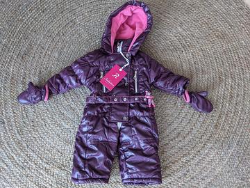 Morbida tutina da neve per neonata, imbottita, perfetta per le giornate più fredde. Taglia 6 mesi.