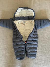Piumino Storm Save The Duck Kids in tessuto tecnico trapuntato con imbottitura pesante animal-free che avvolge il corpo con volume uniforme. Modello intero con cappuccio amovibile e interno rifinito in pile morbido che offre una sensazione calda e soffice a contatto con la pelle. Zip frontale con piccolo tiretto arancione che richiama la round logo patch sulla manica. Maniche lunghe con coprimani integrati e polsini elasticizzati che migliorano l’aderenza senza comprimere. Parte inferiore completata da copripiedi imbottiti e caviglie elastiche che seguono la linea del piumino trapuntato creando un profilo compatto e avvolgente.
