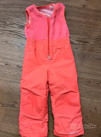 Tuta da sci Columbia, impermeabile, traspirante, composta da giacca con cappuccio regolabile sui polsi e pantaloni con pettorina termica regolabile nelle spalline.