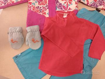 completo sci (giacca + salopette), pile, guanti 3-4 anni + doposci nr 28.