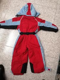 Tuta da sci intera 104 cm, torace e cappuccio foderato di pile, con cappuccio staccabile, cerniera sul fondo ed elastico fermapantaloni, usata poche volte