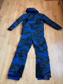 Tuta da sci marca Patagonia da ragazzo. Imbottita, pantalone regolabile e cappuccio staccabile. Età 12/14 anni.