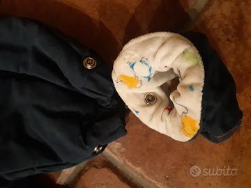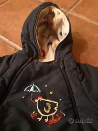 Tuta imbottita blu scuro, doppia cerniera sul davanti, guanti e scarpette che si possono togliere con bottoni. Misura 54 cm, 1 mese.