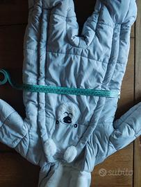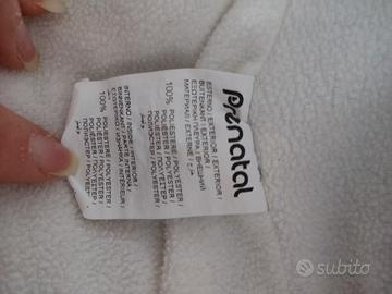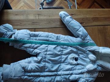 Taglia 6-9 mesi, si apre completamente con le 2 cerniere laterali. le imbottiture per mani e piedi si possono rimuovere , lavabile in lavatrice. usato poche volte