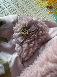 Morbida tuta invernale per neonata firmata Baker, perfetta per le giornate più fredde. Il design rosa è arricchito da dettagli in pelo e ricami.