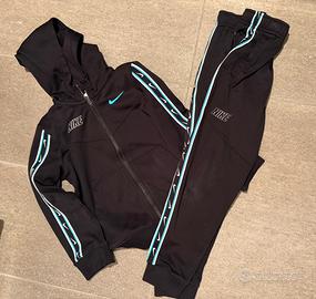 Vendo tuta NIKE taglia S bambino (128-137 cm di altezza). Tuta nera con bande laterali azzurre in buono stato con 2 piccoli segni di usura su un ginocchio come da foto.