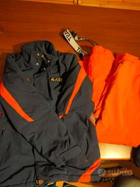 Tuta da sci tenuta bene arancione e giubbino blu tuta colorata con pantalone verde ( leggermente rovinata infondo al pantalone ) 60 al pezzo
