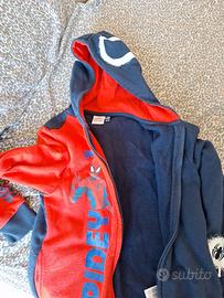 Vendo tuta Spiderman per bambino, in ottimo stato. - Felpa con cappuccio e zip. - Pantaloni con coulisse. - Stampa Spiderman su entrambi i capi. - Colore blu e rosso.
