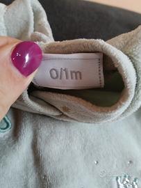 - taglia 0 -1 mese, ma essendo spezzato può andare bene fino ai 56/60 cm a seconda della corporatura quindi fino ai 2 mesi e oltre