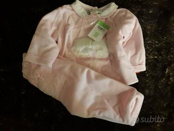 Completo NUOVO con etichetta due pezzi maglia e pantalone in ciniglia molto pesante doppia imbottitura rosa con orsetti 6/9 mesi euro 19.