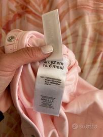 Tutina per bambina nel colore rosa. Manica lunga e apertira sul davanti con bottoni. Nuova, munita di cartellino e dotata di sacchetto regalo.