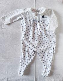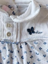 Tutina Chicco in cotone bianco, per i più piccoli. Presenta un grazioso motivo di farfalle blu.