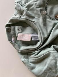 Tutina estiva due pezzi per neonato 1 mese. Colore: maglietta verde con pantaloncino con fantasia a righe Materiale: cotone Nuova, usata solo 1 volta.