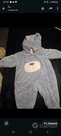 tutina intera pelosa azzurro/ grigia con originale marines new Born 3/6 mesi con applicazione a forma di orso