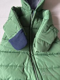 Tutina intera imbottita in poliestere per bambino colore verde con interni blu , marca petit bateau con cerniera integrale cappuccio e copertura mani , taglia 12 mesi 74 cm , comprato e mai usato , ancora con cartellino . Prezzo d’acquisto 95€ vendiamo a 75 € . Consegna a mano Ferrara