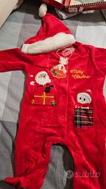 Tutina natale neonato 3/6 mesi nuovo con cappellino di natale, ciniglia .