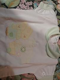 é un pagliaccetto estivo quindi ha mezze maniche e pantaloncini, presenta bottoni rapidi per facilitare il cambio