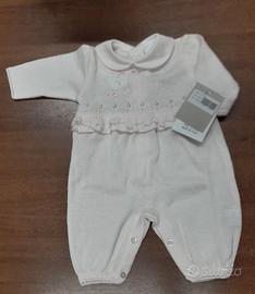 Tutina neonato (1 mese) in cotone 100% colore rosa chiaro, produzione Made in Italy.