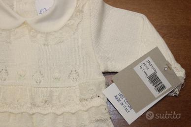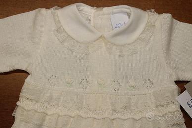 Tutina neonato (1 mese) in cotone 100% colore panna, produzione Made in Italy.