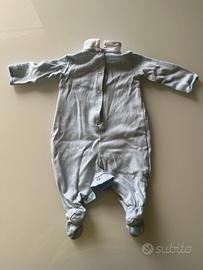 Tutina intera per neonato 1/3 mesi (56 cm) a maniche lunghe. Colore: azzurro a righe. Materiale: cotone leggero Nuova, usata solo 1 volta