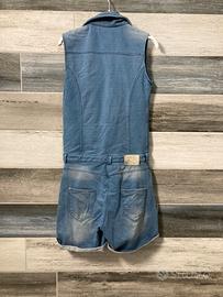 Tutina di marca, molto morbida ed elasticizzata, senza maniche e con colletto, adatta a una bambina/ragazzina di 10 anni.