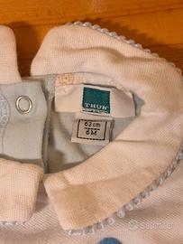 Tutina intera Thun per bambino, taglia 6–12 mesi.Modello con piedini, maniche lunghe e colletto, realizzata in cotone morbido.Decorata con delicato ricamo Thun a tema marino, nei toni del bianco e azzurro.