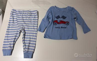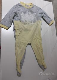 Pantalone blu €3 Tutina bianca con piedini e blu a righe €2 l’una Tutina gialla e grigia €5 Pigiamini completi maglietta e pantalone €3 l’uno Taglia 6/9 mesi 68 cm