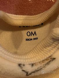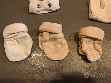 Vendo 4 tutine e 3 body per neonato, 0 mesi 50cm 3kg, mai utilizzate, aggiungo tre paia di moffole.