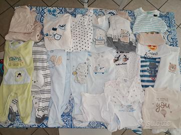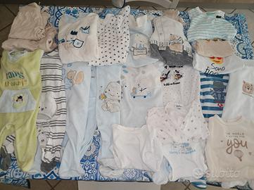 1 set tutine neonato primi mesi 1/3 mesi 56 cm ottime in buon stato . - 13 tutine maniche lunghe cotone 0/3 - 4 body maniche lunghe 0/3 - 2 body maniche corte 0/3 - 1 completino maglia pantaloni 0/3 62 cm Vendo tutto insieme .