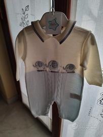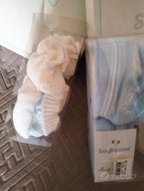Due tutine Stella,di lana leggera per bimbo, coppia di cappellini e scarpette lana bianca e azzurro, tg 1.