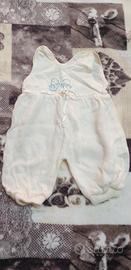 Vendo 2 Tutine neonato in lana una misura 0 appena nato. L'altra 2 /3 mesi e un maglioncino se volete da abbinare alle tutine. I vestitini sono stati usati . Sono appena ingiallite. Si puo togliere facilmente.