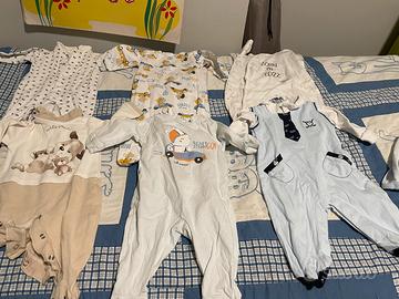 Tutine da neonato 0-1 mese e 1-3 mesi. Usate poche volte. Alcune nuove. Tessuto: 100% cotone 8 euro/ cadauna Se acquistate tutte: 45 euro