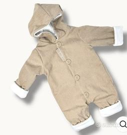 Tutone Baby a costine con cappuccio ,Nazareno Gabrielli, 0-3 mesi UNISEX, color tortora, nuovo senza cartellino.