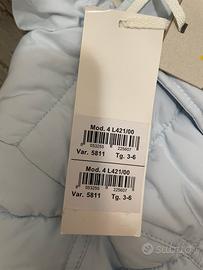 Tutone imbottito invernale azzurro, nuovo, con cartellino e appendino. Trattasi di regalo triplo.