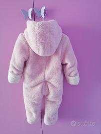 Vendo tutone imbottito invernale per bambina color rosa e bianco taglia 6-9 mesi, 74 cm.