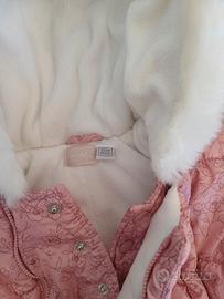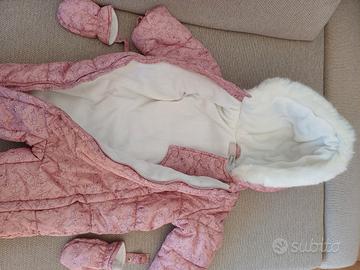tuta rosa imbottita e trapuntata con cappuccio, tessuto termico tecnico impermeabile, interno bianco in finta pelliccia, chiusura frontale con doppia zip, manopole e scarpine removibili con bottone a pressione, bordi elasticizzati, per stagione autunno-inverno, per città e montagna. My First Chicco.
