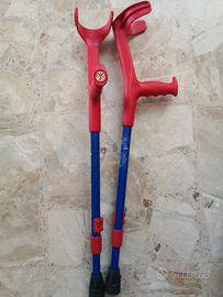 Vendo tutore Walker taglia 01, tutte le info si trovano sulla foto della scatola , e coppia di stampelle in alluminio regolabili da 51cm a 64cm, misura da puntale a impugnatura. Togliendo i blocchi si abbassano di ulteriori 5 cm. Il tutto è stato usato per 10 giorni da una bimba di 4 anni. È tutto come nuovo