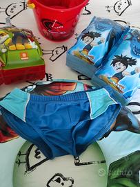 Due paia di braccioli un salvagente un secchiello nuovo e un costume per bimbo