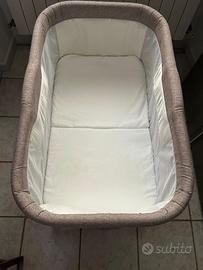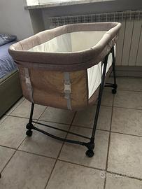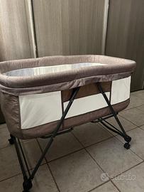 Culla pieghevole con ruote. Tenuta davvero bene e usata poca e lavata. Comodissima e leggera da portare in viaggio. Facile da aprire e quando é montata si può spostare con le sue ruote.