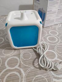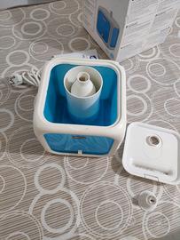 Vendo nuovissimo HumiRelax Chicco, un umidificatore particolarmente indicato per rendere meno secca l’aria delle camere dei bambini aiutandoli a proteggere le mucose nasali e le vie respiratorie e creando così le migliori condizioni di benessere. Spesso l’uso troppo prolungato dei termosifoni in casa può seccare l’aria in maniera eccessiva. Questa condizione può causare l’insorgere di raffreddori frequenti e di allergie che, a lungo andare, si cronicizzano. Il design è molto singolare, la forma cubica di questo umidificatore assicura una grande stabilità, e quando si ha a che fare con i bambini questa è una grande conquista. Quello che salta subito all’occhio è l’estrema semplicità del suo utilizzo. L’umidificatore Chicco non ha molte funzioni, quello che è necessario fare, è semplicemente riempirlo d’acqua e dopo 4 o 5 minuti l’umidificatore comincerà a funzionare emettendo vapore sano privo di batteri e si spegnerà automaticamente. L’apertura del coperchio agevola la pulizia del serbatoio. L’autonomia dell’acqua non supera le 3 ore, trascorso questo tempo, infatti, sarà necessario rabboccarlo di acqua. L’umidificatore Chicco è dotato anche di una particolare vaschetta che può essere riempita con essenze profumate. Tra le altre cose, il suo uso durante la notte è indicato per la bassissima rumorosità. Il prodotto è stato usato una sola volta pertanto è in condizioni estetiche e funzionali pari al nuovo. E’ dotato di scatola originale e manuale di istruzioni.