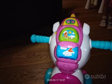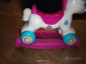 Un dolce unicorno 3 in 1 che è dondolo, cavalcabile e centro attività interattivo!