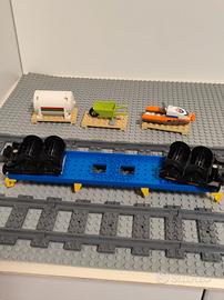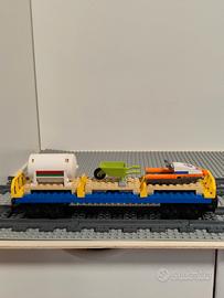 Vendo vagone merci Lego, in ottime condizioni. - Il vagone è composto da diversi elementi. - Include una cisterna bianca, una carriola verde e un motoscafo arancione. - Perfetto per completare la tua collezione Lego.