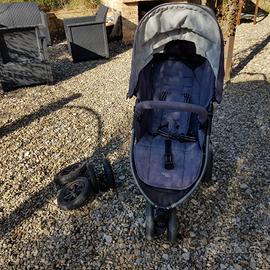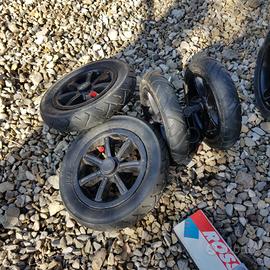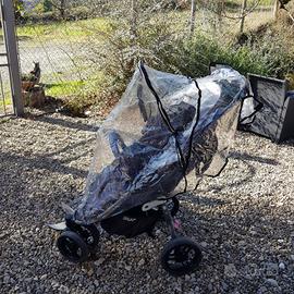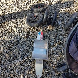 Passeggino Valco con gomme da strada e da trekking, sci creato artigianalmente per andare sulla neve e copertura antipioggia.